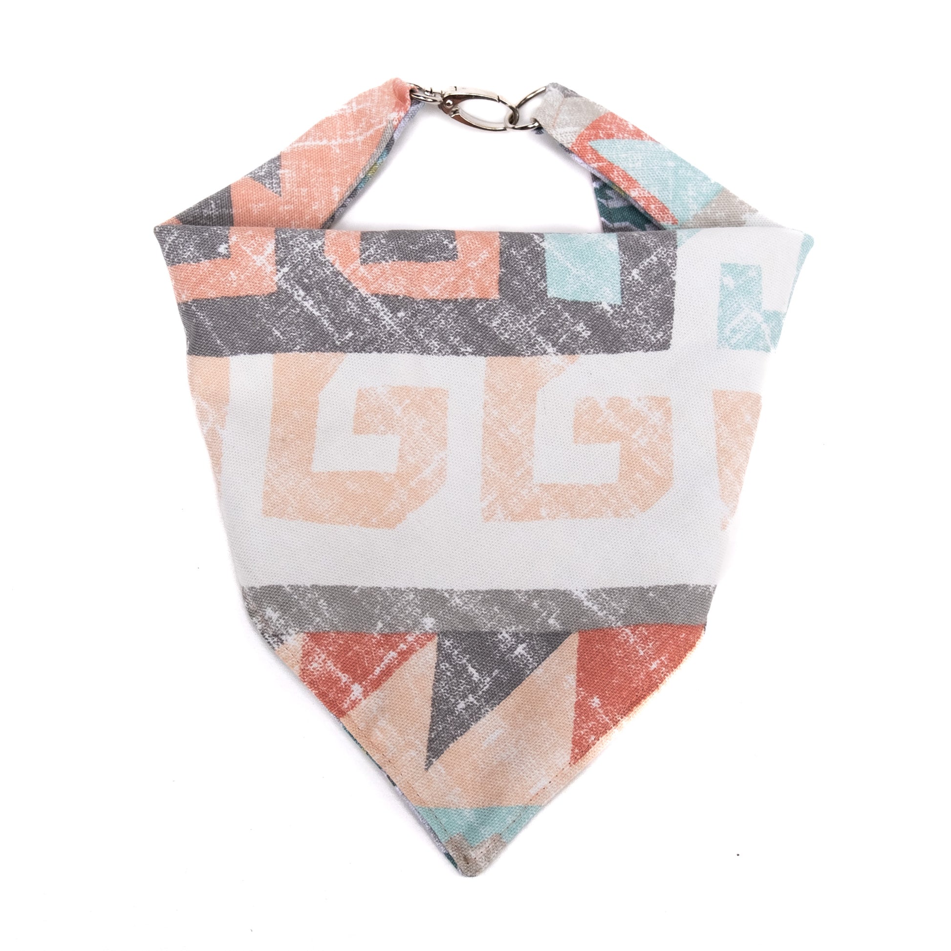 The Aztec Geo reversible dog bandana is made of light cotton twill. The metal clip makes it easy to dress your happy dog for a walk on the town. Soak the bandana in water before you go to help keep your dog cooler during the hot summer days.