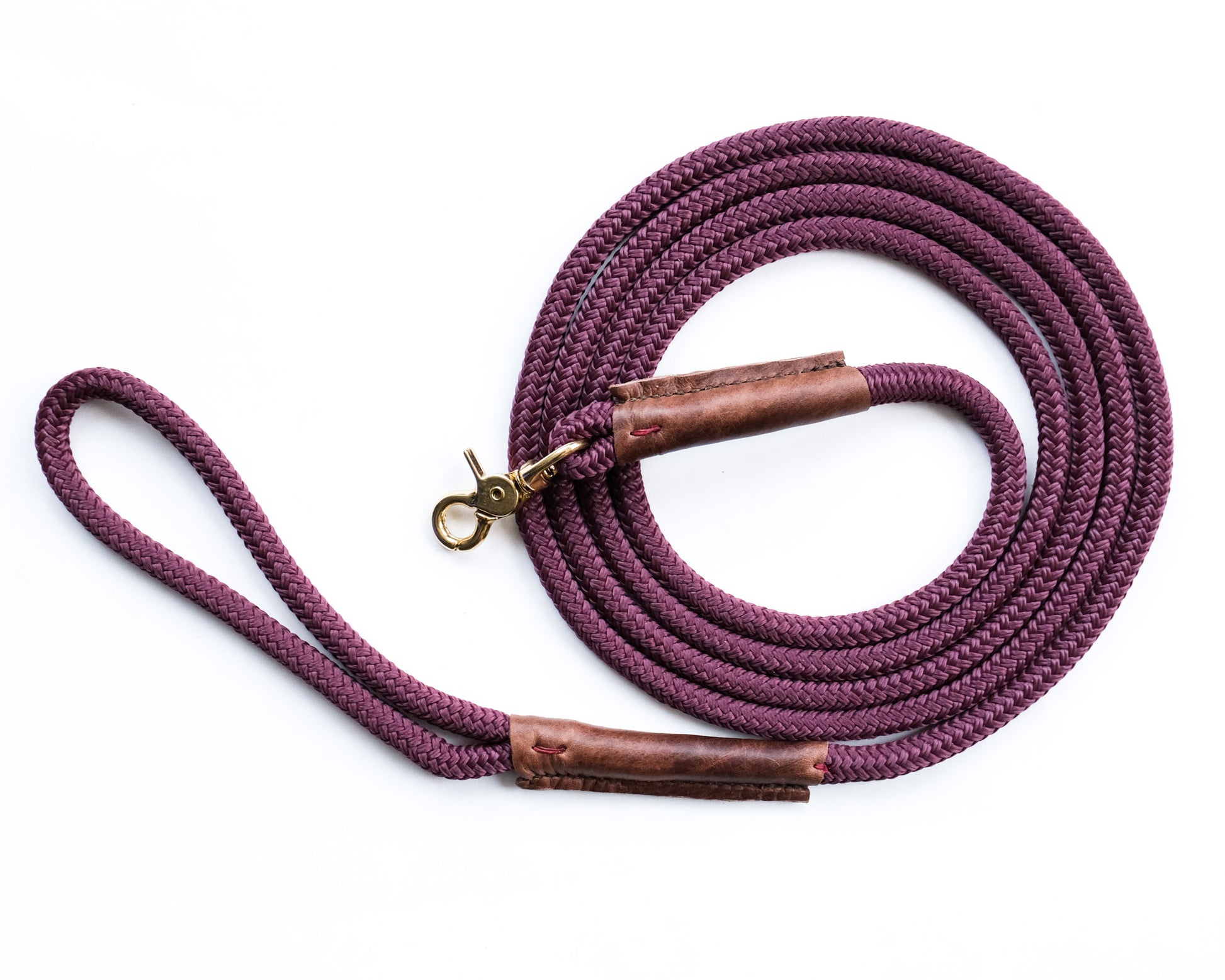 Design a custom dog leash that is perfect for both you and your dog will love. Each leash is made of soft yacht rope with genuine leather wraps. The leather adds a sense of class while giving you extra padding to grip when your dog pulls. The soft yacht rope will not fade in the sun and does not smell even after a day of fetch at the lake.