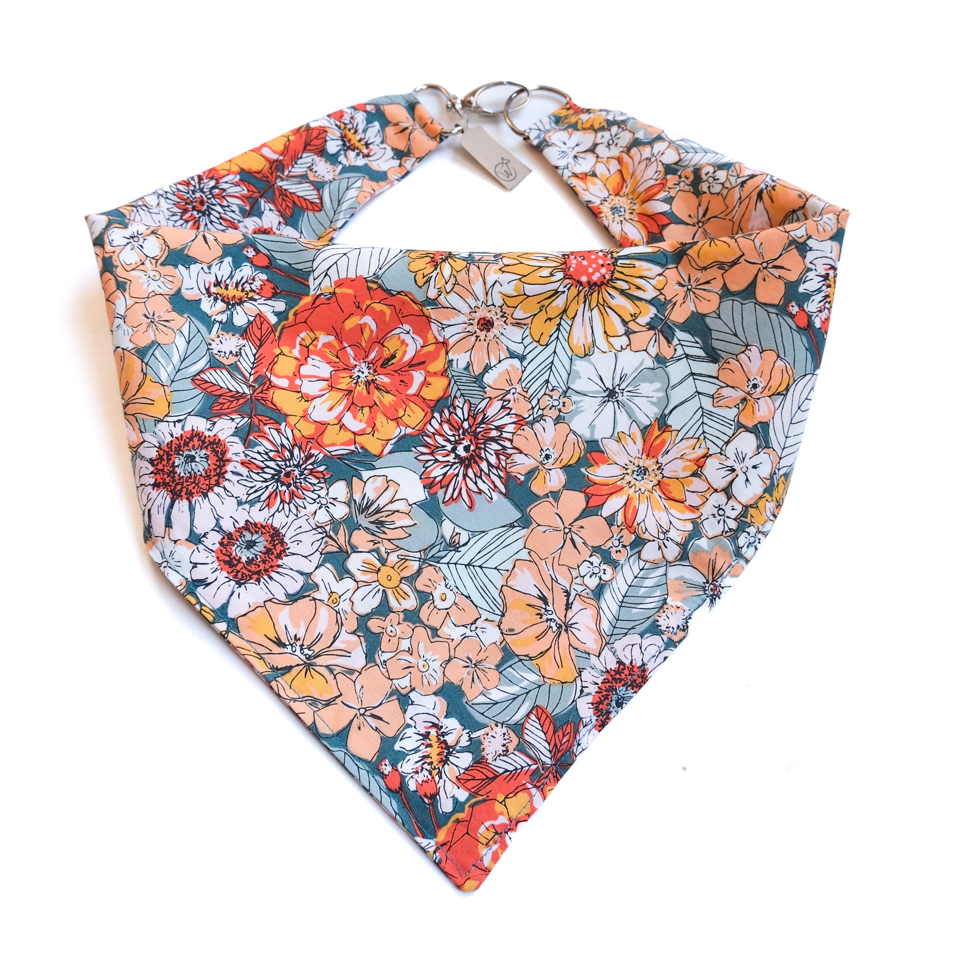 Make your pup the talk of the town with this reversible Kindred Flowers Bandana! This cute clip-on features bright floral patterns on one side and a complimentary geo stripe on the other. Perfect for any occasion and made with organic cotton fabric, your pup is sure to look paw-sitively stylish!