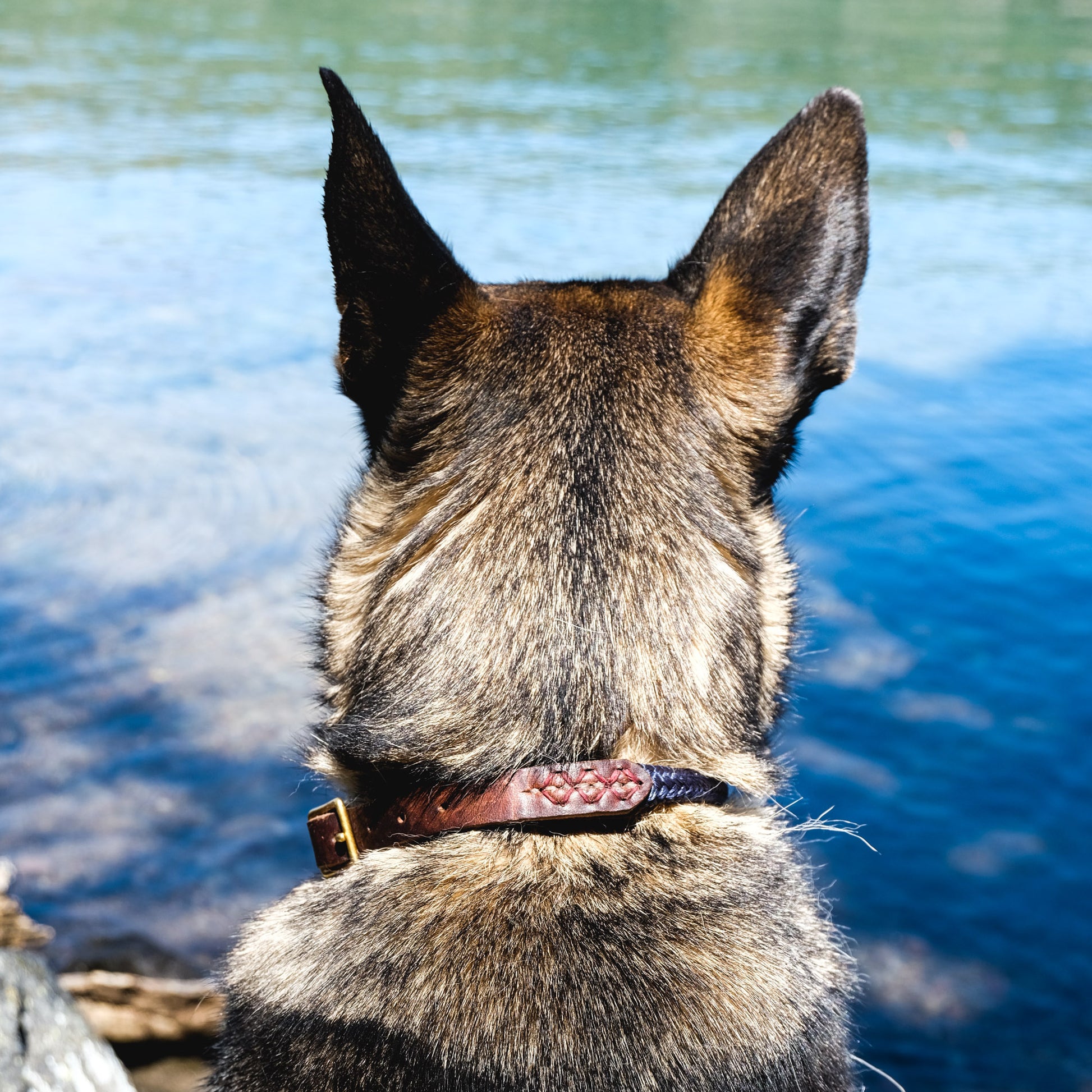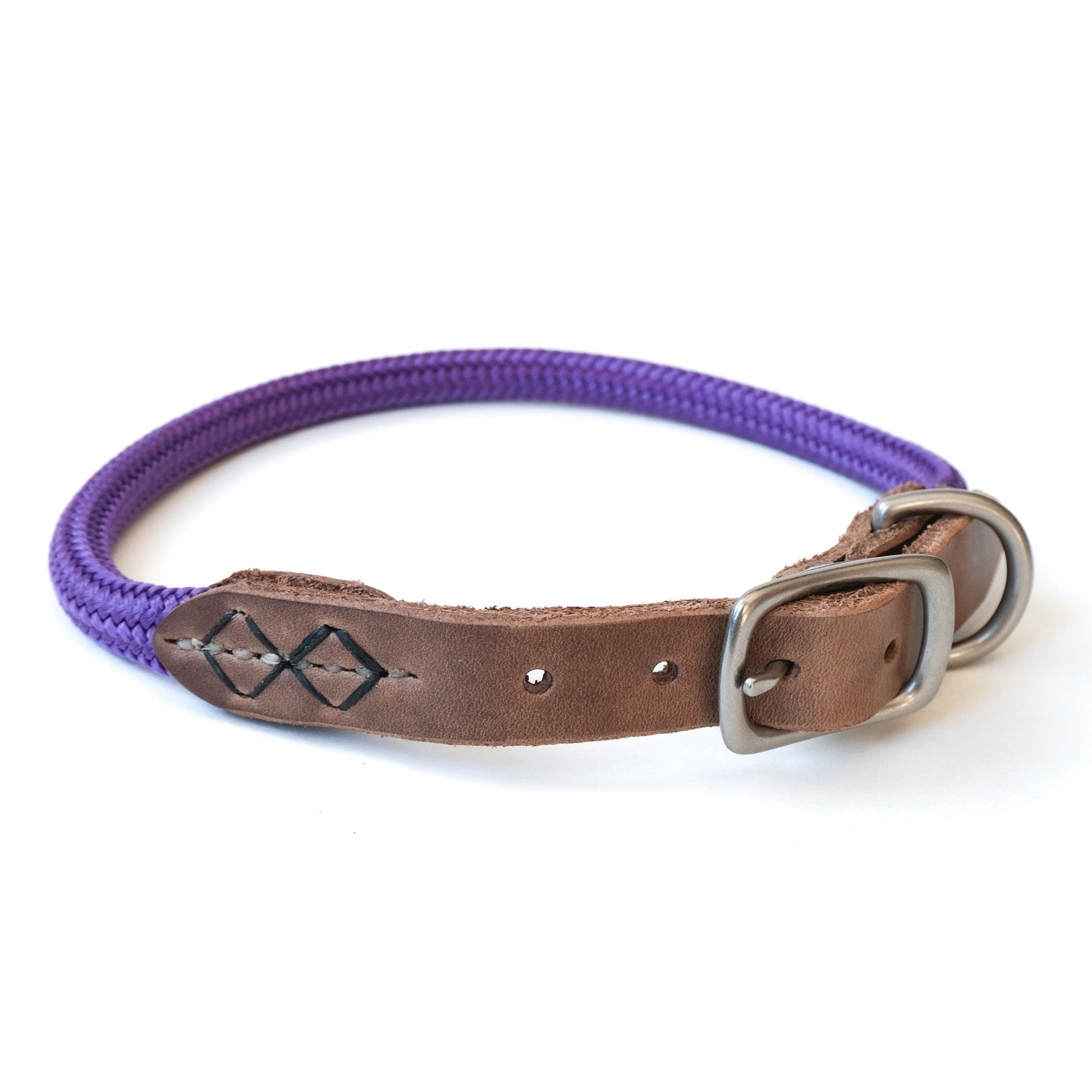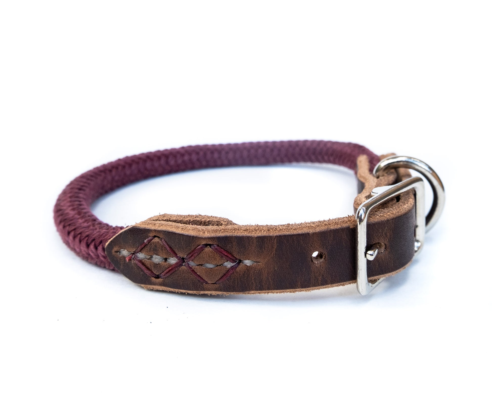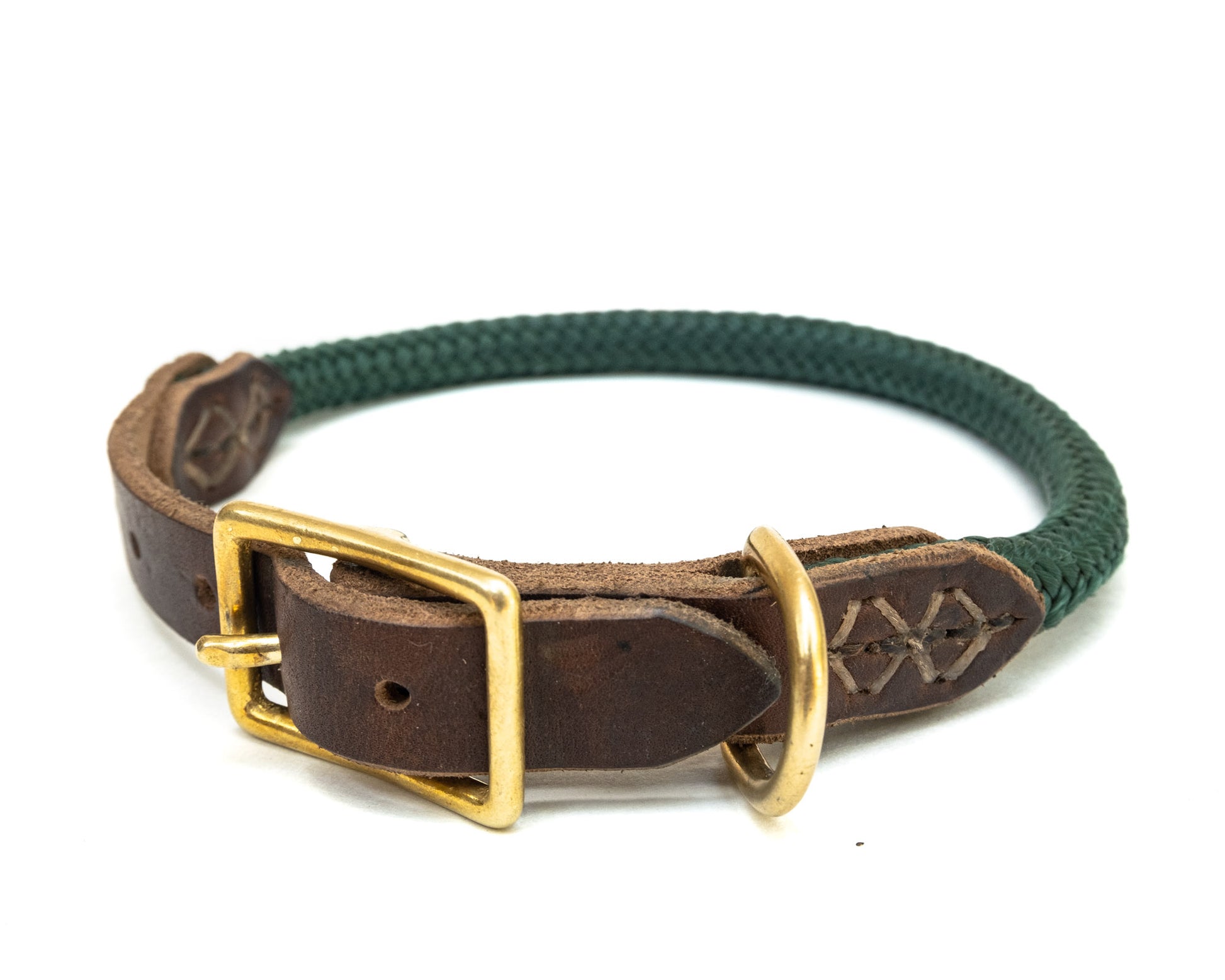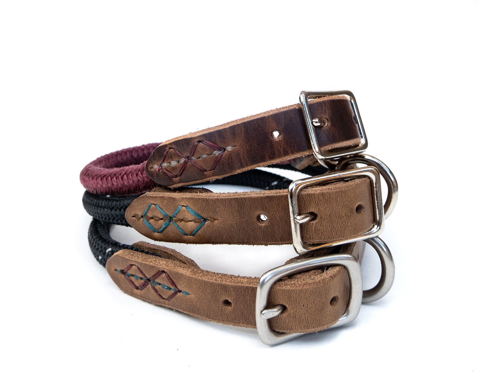 This leather and rope collar keeps your dog comfortable and looking good on every adventure. The soft, durable Horween leather is hand stitched with a unique pattern to give the rope collar extra strength and durability. The soft nylon yacht rope will not cut into his neck or damage his or her hair. This unique rope collar does not fade in the sun and is guaranteed to last a lifetime of adventures.