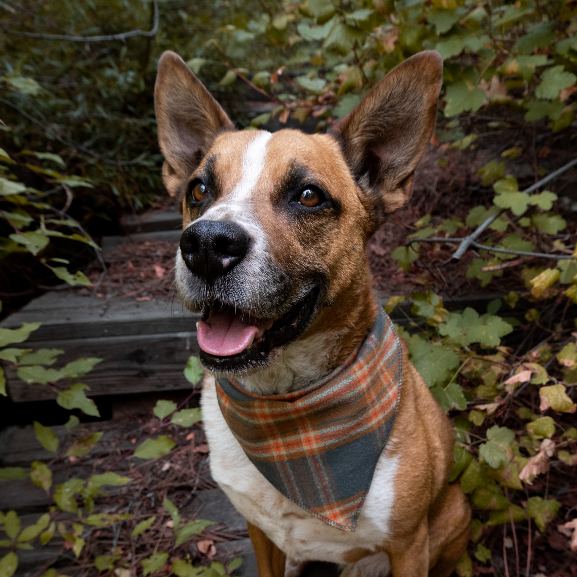This green plaid bandana is made from soft flannel that will make you jealous of how cozy your dog is. The metal clip makes attaching the bandana easy and quick. This bandana is perfect for playing in the leaves or taking cute holiday photos.